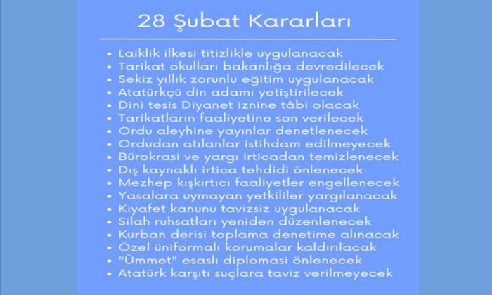 Suay KARAMAN 21 Şubat 1997 tarihinde MİT Müsteşarı, Cumhurbaşkanı Süleyman Demirel’e “İrticai Tehdidin Halihazır Durumu” başlıklı 32 sayfalık bir rapor sunar. Raporda en güçlü tarikatlar içinde Fethullah Gülen grubunun olduğu anlatılmakta ve gruba ait 4 üniversite, 130 civarında lise ile 50’den fazla şirket olduğu ve grubun Zaman gazetesinin ABD ile birlikte 12 ülkede yayımlandığı bildirilir. … 28 ŞUBAT İÇİN okumayı sürdür